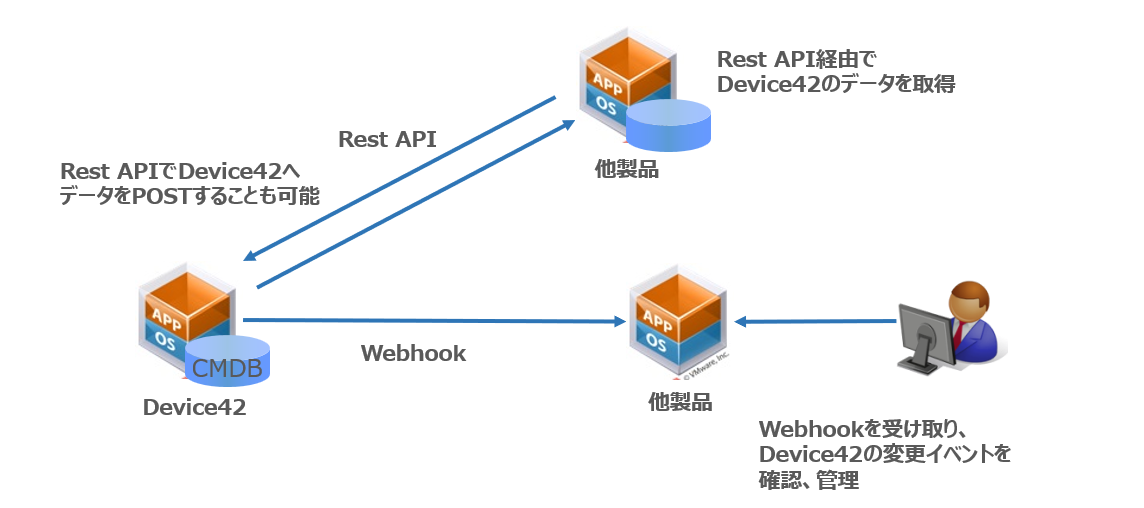例えば、インシデントチケットに記載されたサーバー名をクリックすると、Device42の詳細情報が表示される、といった連携が可能です。また、変更申請が承認されたら自動的にCMDBが更新される、といったワークフローも構築できます。