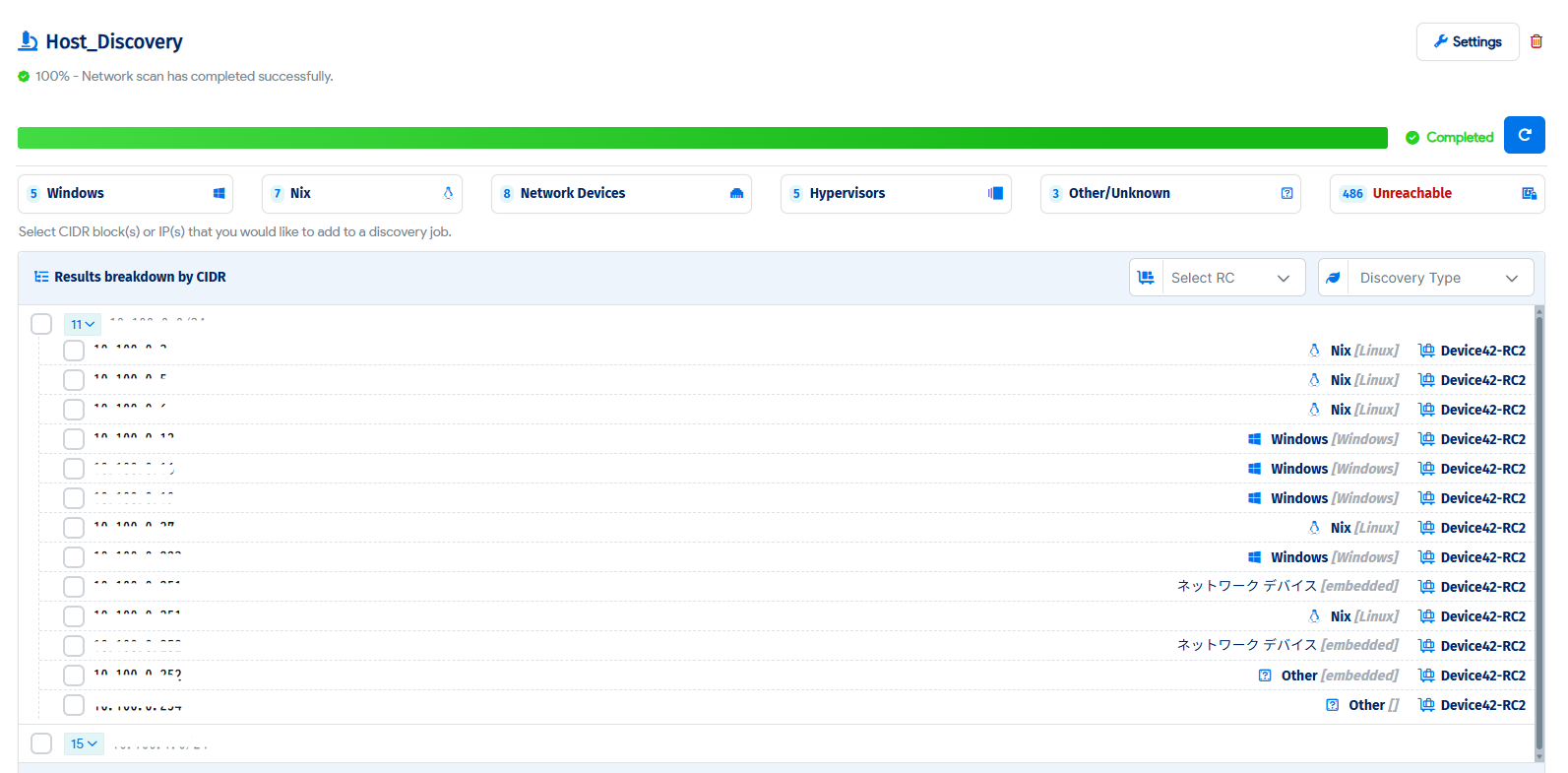 従来の手動による情報収集では、数百台のサーバーの情報を集めるだけで数週間かかることもありました。Device42は、ネットワークスキャン、WMI、SSH、SNMP、クラウドAPIなど、様々な方法で様々なプラットフォームから自動的に情報を収集します。これにより、初期構築の工数を大幅に削減できるだけでなく、定期的な自動スキャンによって常に最新の情報を維持できます。